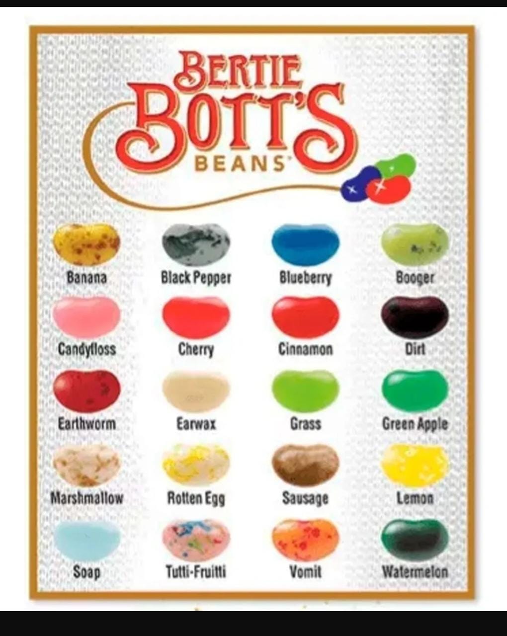 * Banana * Pimienta negra * Arándano * Algodón de azúcar * Cereza * Canela * Suciedad * Lombriz * Cera de oído * Césped * Marshmallow * Moco * Manzana verde * Limón * Huevo podrido * Salchicha * Jabón * Tutti-Fruitti * Vómito * Sandía