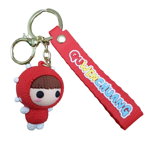 Llavero Goma 3D Kawaii - Muñeca de Niña Tejido Amigurumi disfraz Frutilla