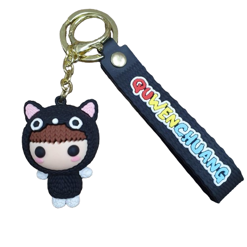 Llavero Goma 3D Kawaii - Muñeca de Niña Tejido Amigurumi disfraz Gatito