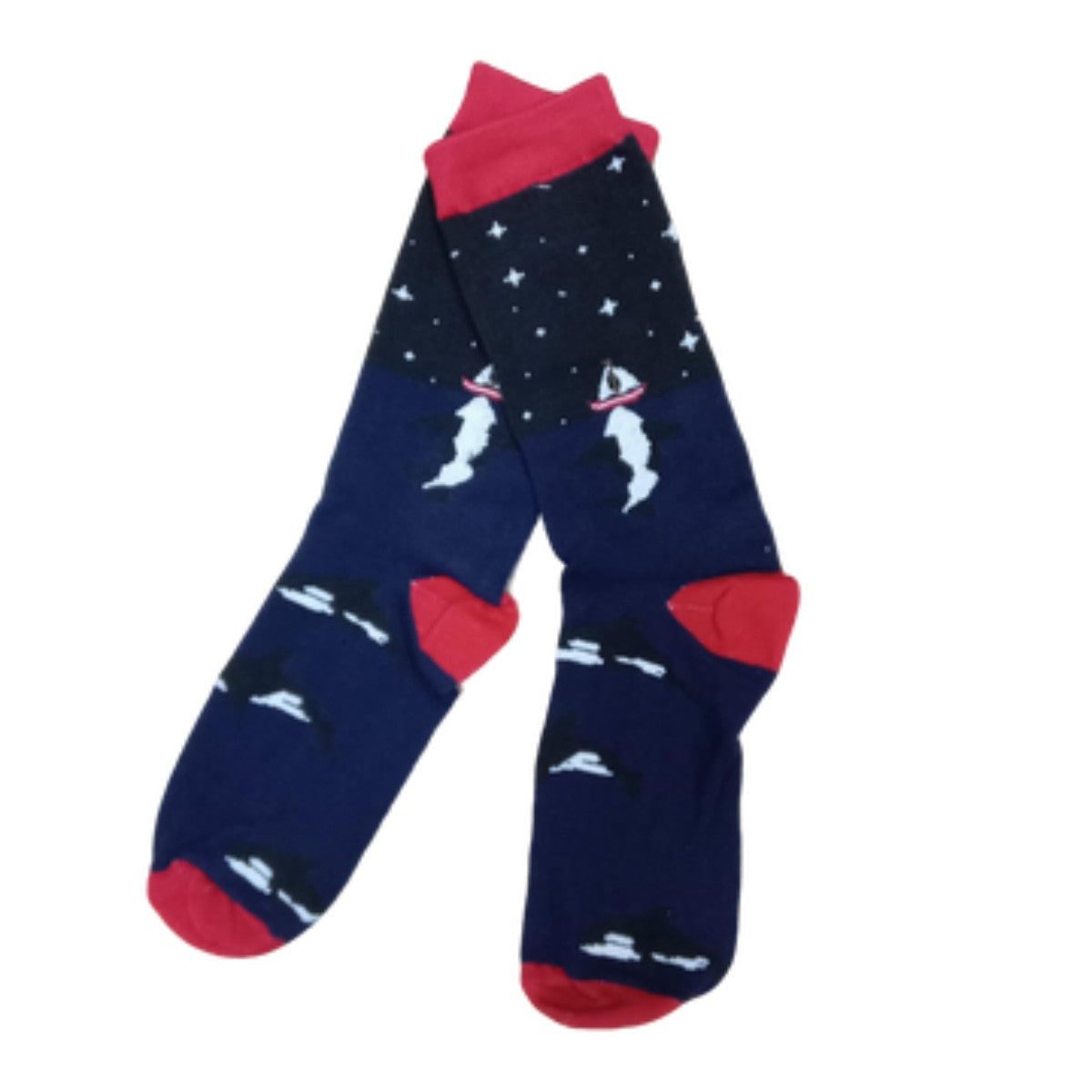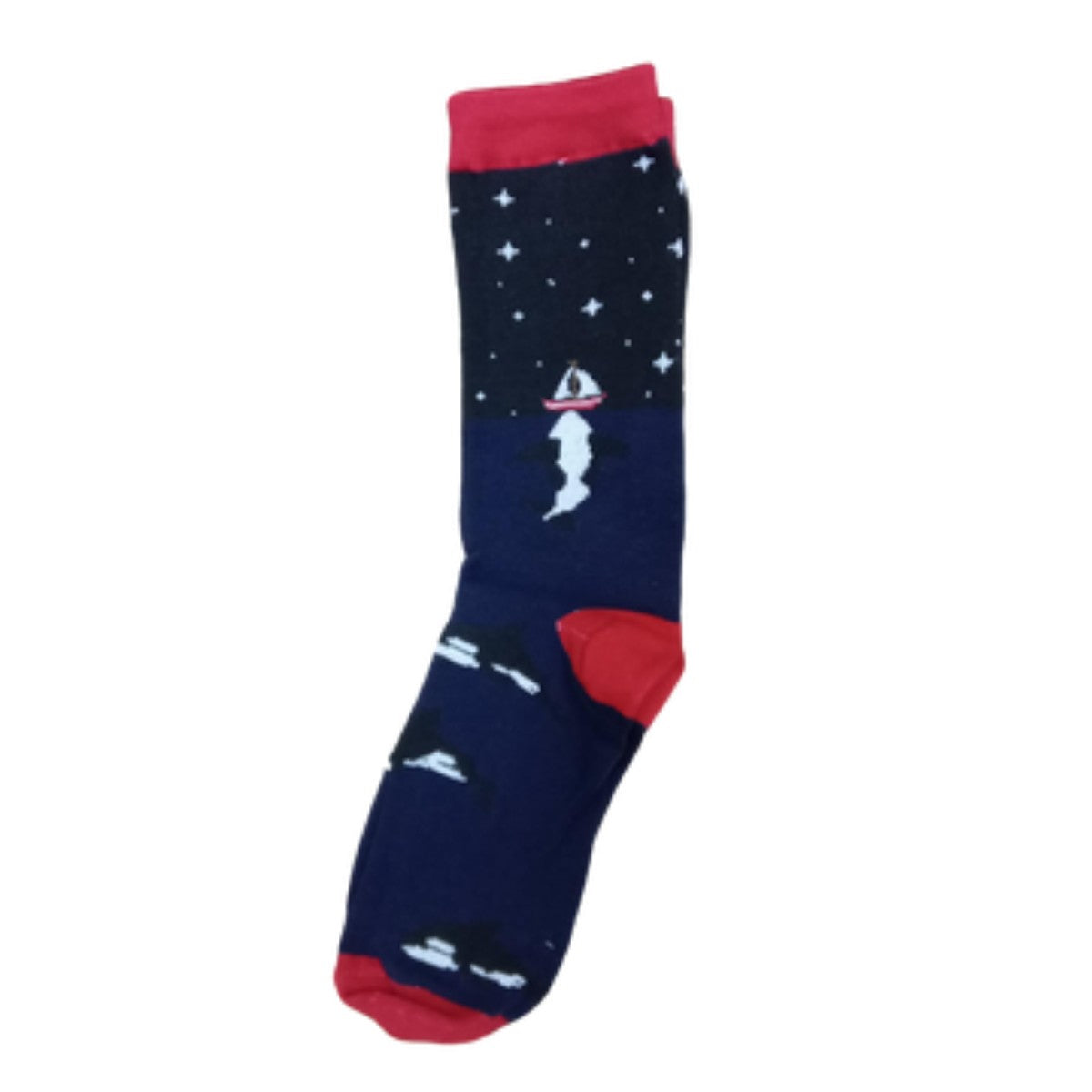 Medias 3/4 Barco Velero Noche Estrellas Punta Roja
