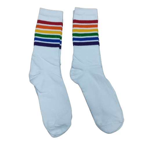 Medias 3/4 Blanca - Con rayas (arcoíris)