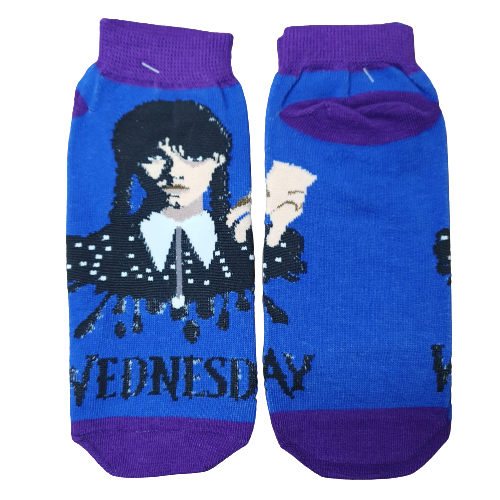 Medias Soquete Merlina Vestido Lunares & Mano Fondo Azul